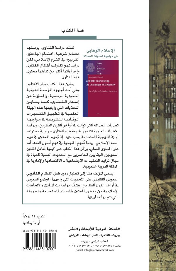 يسعى المؤلف هنا إلى تحليل ردود فعل النظام القانوني السعودي التقليدي على التحديات التي واجهها المجتمع السعودي في أواخر القرن العشرين، ويتبنّى دراسة بث المبادئ والاتجاهات الإسلامية من منظور المفتين والمصادر المستخدمة والطريقة التي تتم بها مقاربتها.