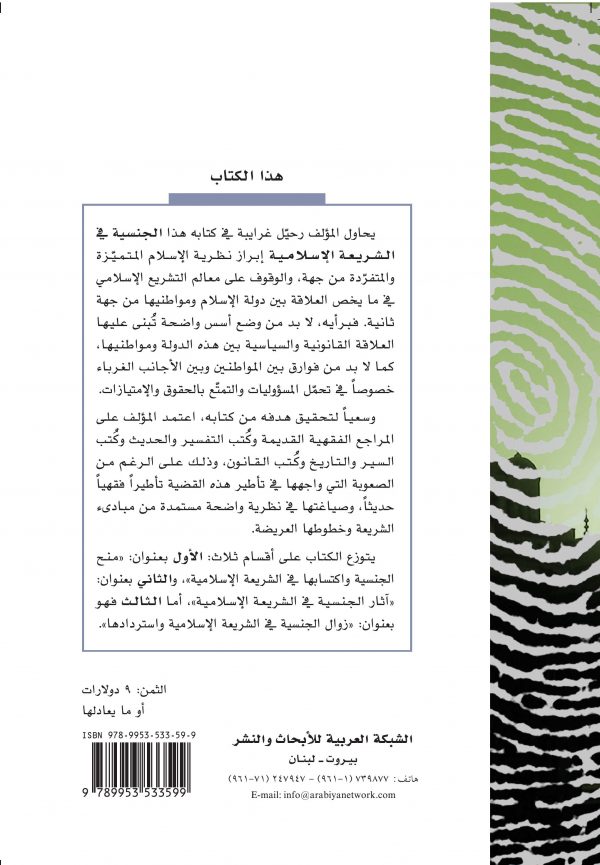 يحاول المؤلف رحيّل غرايبة في كتابه هذا الجنسية في الشريعة الإسلامية إبراز نظرية الإسلام المتميّزة والمتفرّدة من جهة، والوقوف على معالم التشريع الإسلامي في ما يخص العلاقة بين دولة الإسلام ومواطنيها من جهة ثانية. فبرأيه، لا بد من وضع أسس واضحة تُبنى عليها العلاقة القانونية والسياسية بين هذه الدولة ومواطنيها، كما لا بد من فوارق بين المواطنين وبين الأجانب الغرباء خصوصاً في تحمَل المسؤوليات والتمتّع بالحقوق والإمتيازات.