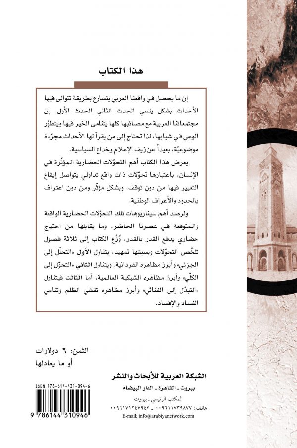يعرض هذا الكتاب أهم التحولات الحضارية المؤثرة في الإنسان، باعتبارها تحولات ذات واقع تداولي يتواصل إيقاع التغيير فيها من دون توقف، وبشكل مؤثرومن دون اعتراف بالحدود والأعراف الوطنية.
