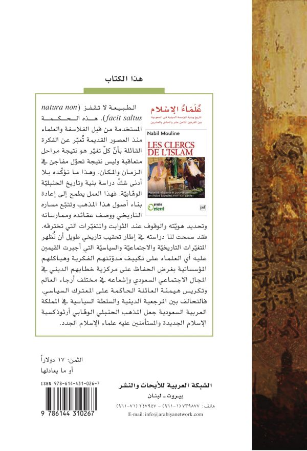 الطبيعة لا تقفز (nature non facit saltus) هذه الحكمة المستخدمة من قبل الفلاسفة والعلماء منذ العصور القديمة تعبر عن الفكرة القائلة بأن كل تغير هو نتيجة مراحل متعاقبة وليس نتيجة تحول مفاجئ في الزمان والمكان وهذا ما تؤكده بلا أدنى شك دراسة بنية وتاريخ الحنبلية الوهابية فهذا العمل يطمح إلى إعادة بناء أصول هذا المذهب وتتبع مساره التاريخي ووصف عقائده وممارساته وتحديد هويته والوقوف عند الثوابت والمتغيرات التي تخترقه فقد سمحت لنا دراسته في إطار تحقيب تاريخي طويل أن نظهر المتغيرات التاريخية والاجتماعية والسياسية التي أجبرت المقيمين عليه أي العلماء على تكييف مدونتهم الفكرية وهياكلهم المؤسساتية بفرض الحفاظ على مركزية خطابهم الديني في المجال الاجتماعي السعودي وإشعاعه في مختلف أرجاء العالم وتكريس هيمنة العائلة الحاكمة على المعترك السياسي. فالتحالف بين المرجعية الدينية والسلطة السياسية في المملكة العربية السعودية حمل المذهب الحنبلي الوهابي أوثوذكسية الإسلام الجديدة والمستأمنين عليه علماء الإسلام الجدد