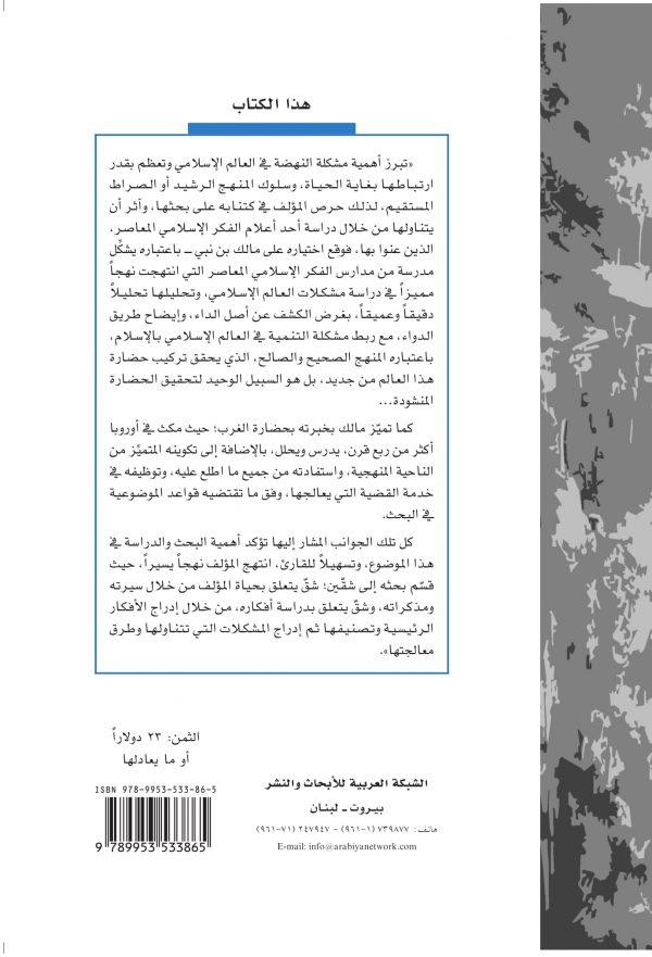 تبرز أهمية مشكلة النهضة في العالم الإسلامي وتعظم بقدر ارتباطها بغاية الحياة، وسلوك المنهج الرشيد أو الصراط المستقيم، لذلك حرص المؤلف في كتنابه على بحثها، وآثر أن يتناولها من خلال دراسة أحد أعلام الفكر الإسلامي المعاصر، الذين عنوا بها، فوقع اختياره على مالك بن نبي – باعتباره يشكِّل مدرسة من مدارس الفكر الإسلامي المعاصر التي انتهجت نهجاً مميزاً في دراسة مشكلات العالم الإسلامي، وتحليلها تحليلاً دقيقاً وعميقاً، بغرض الكشف عن أصل الداء، وإيضاح طريق الدواء، مع ربط مشكلة التنمية في العالم الإسلامي بالإسلام، باعتباره المنهج الصحيح والصالح، الذي يحقق تركيب حضارة هذا العالم من جديد، بل هو السبيل الوحيد لتحقيق الحضارة المنشودة…