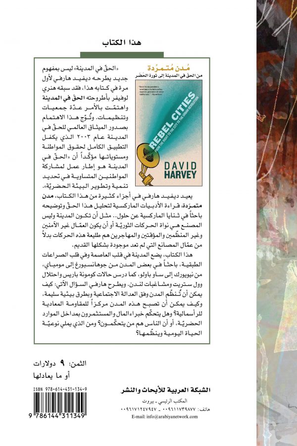 هذا الكتاب، يضع المدينة في قلب العاصمة وفي قلب الصراعات الطبقية، باحثاً في بعض المدن من جوهانسبورغ إلى مومباي، من نيويورك إلى ساو باولو، كما درس حالات  كومونة باريس واحتلال وول ستريت ومشاغبات لندن. ويطرح هارفي السؤال الآتي: كيف يمكن أن تُنظّم المدن وفق العدالة الاجتماعية وبطرق بيئية سليمة، وكيف يمكن أن تصبح هذه المدن مركزاً للمقاومة المعادية للرأسمالية؟ وهل يتحكم خبراء المال والمستثمرون بمداخل الموارد الحضرية، أو أن الناس هم من يتحكّمون؟ ومن الذي يملي نوعية الحياة اليومية وينظّمها؟